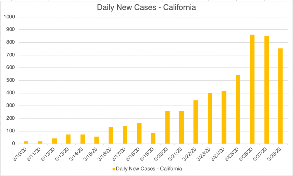 Good news for my home state of California as well! We’ve actually had fewer new cases each day for the last 3 days!
