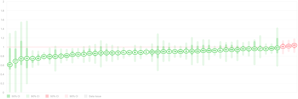 Re-opening: First, after many states have started to re-open, Rt Live is showing that all but 3 states have an Rt value below 1. This means that for most states, each infected person is passing the virus to less than 1 other person, and the virus is slowly disappearing in that state. The states with an Rt above 1 are Minnesota, Maine, and Nebraska. After a poor initial response, I’m happy to say that New York State is doing very well now, and daily new cases are low in New York. In California, my home state, the number of new cases is flat, approximately 1700 cases per day since the middle of April.