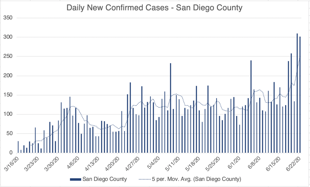 Over the past week, San Diego County Public Health has reported several small outbreaks in restaurants and businesses. As we re-open, it will continue to be important to wear masks and social distance while in public.
