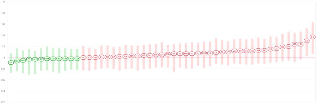 Rt Live shows that more states have an Rt number of less than 1.0, indicating that the virus is slowly going away in that state.