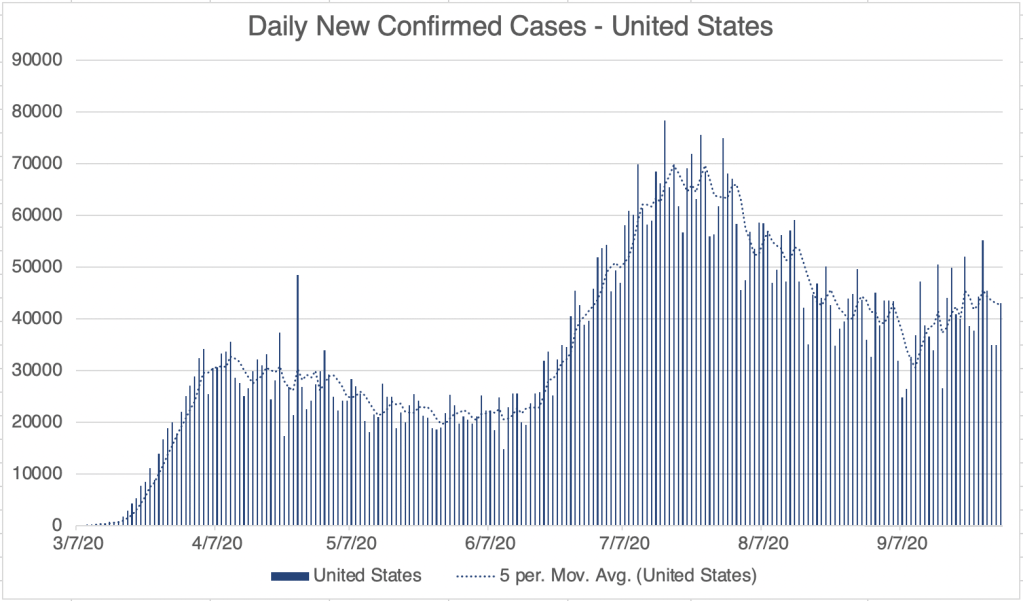 India now has 6.1 million cases as compared to the USs 7.2, and they are just reaching their first peak now, so they will probably surpass our case load soon. This is confirmed cases of course, and there’s no telling now many non-detected cases they have. Of the countries with the top 10 number of confirmed cases, 4 are in South America, Brazil, Colombia, Peru, and Argentina. Mexico is also in the top 10.