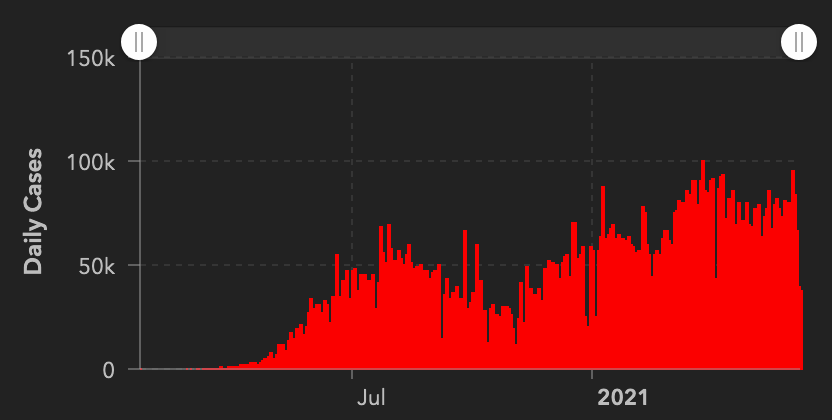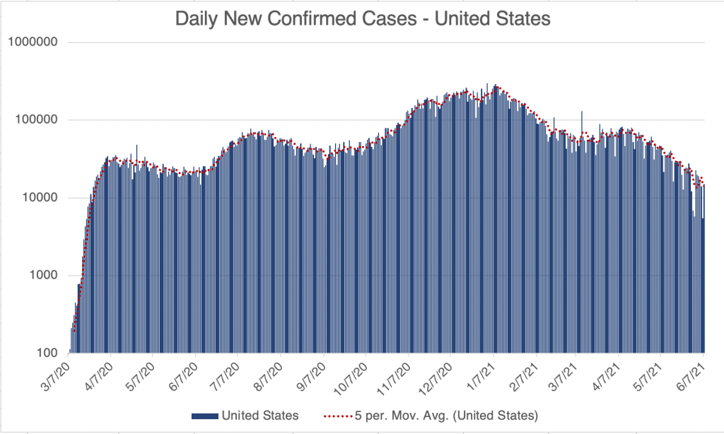 Internationally, case numbers are down, but not everywhere. Cases in India are coming down, but cases in Brazil are persistent. There are still countries in Southeast Asia that have very high new case numbers.