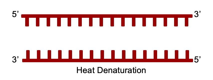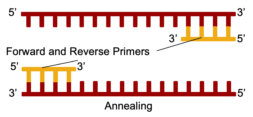 Heat is used to separate the 2 strands, and small pieces of DNA called “primers” bind to the DNA copies at a lower temperature.