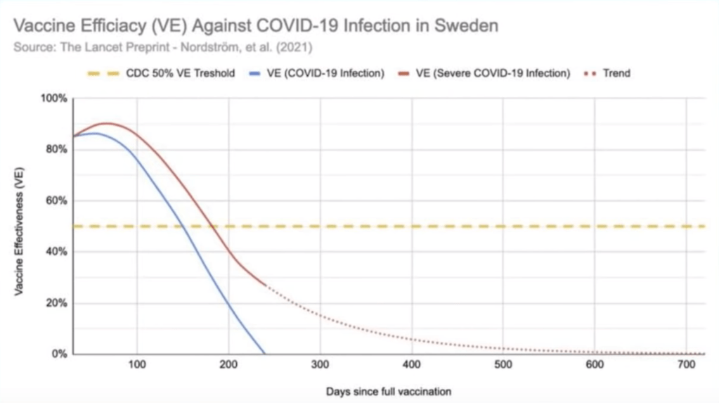 A Swedish paper (Nordström et al) suggested that v@¢¢¡ne effectiveness is reduced over time, especially for elderly men and those with co-morbidities. Effectiveness against severe symptoms begin to be reduced after about 9 months.