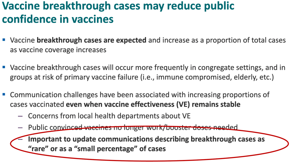 The present confusing situation is a great example of why it’s so crucial to accumulate as much data as we can, and to be as objective as possible about the results.  US agencies are still openly admitting that they have as a goal to promote vaccination (see slide 2),
