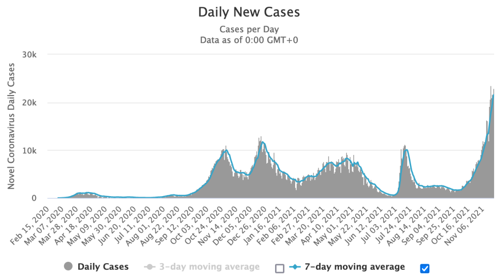 Daily new cases from the Netherlands, November 23rd, 2021.