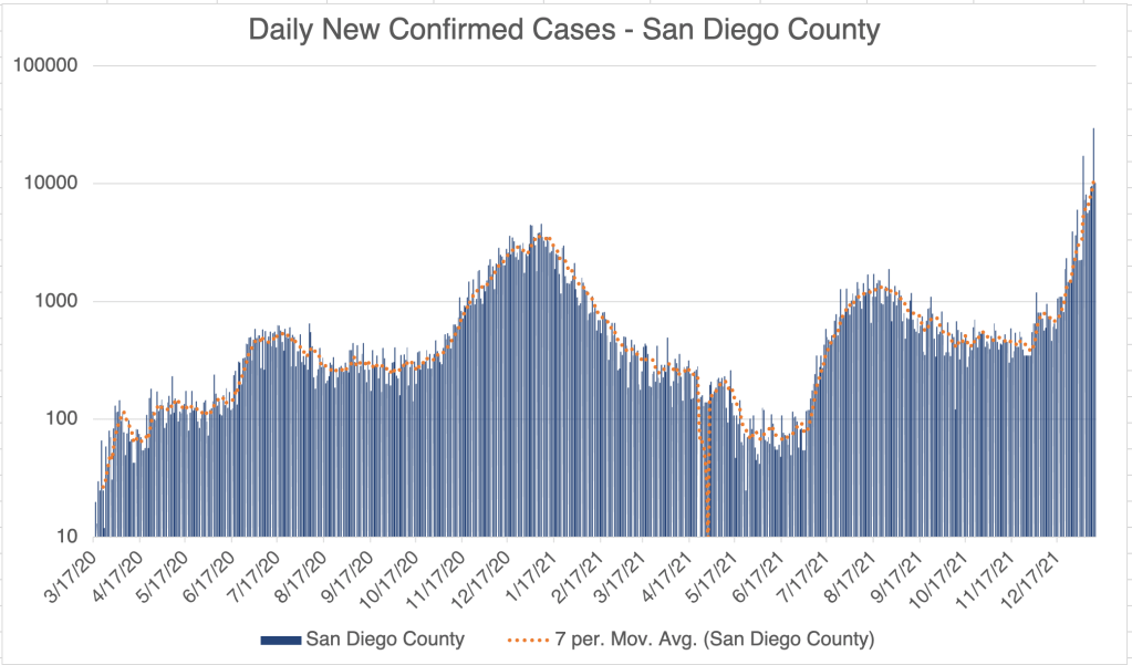 California and San Diego County are of course also experiencing extremely high numbers of cases right now. LA County again has the highest number of cases in the US, with a staggering 384,000 active cases right now.