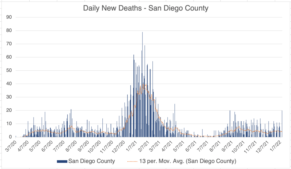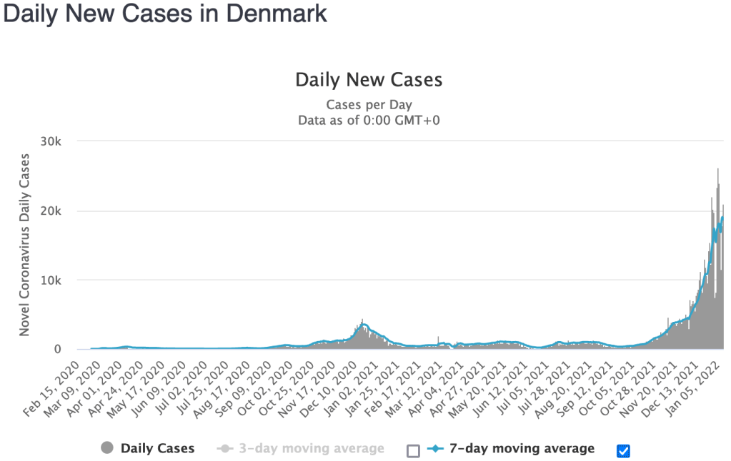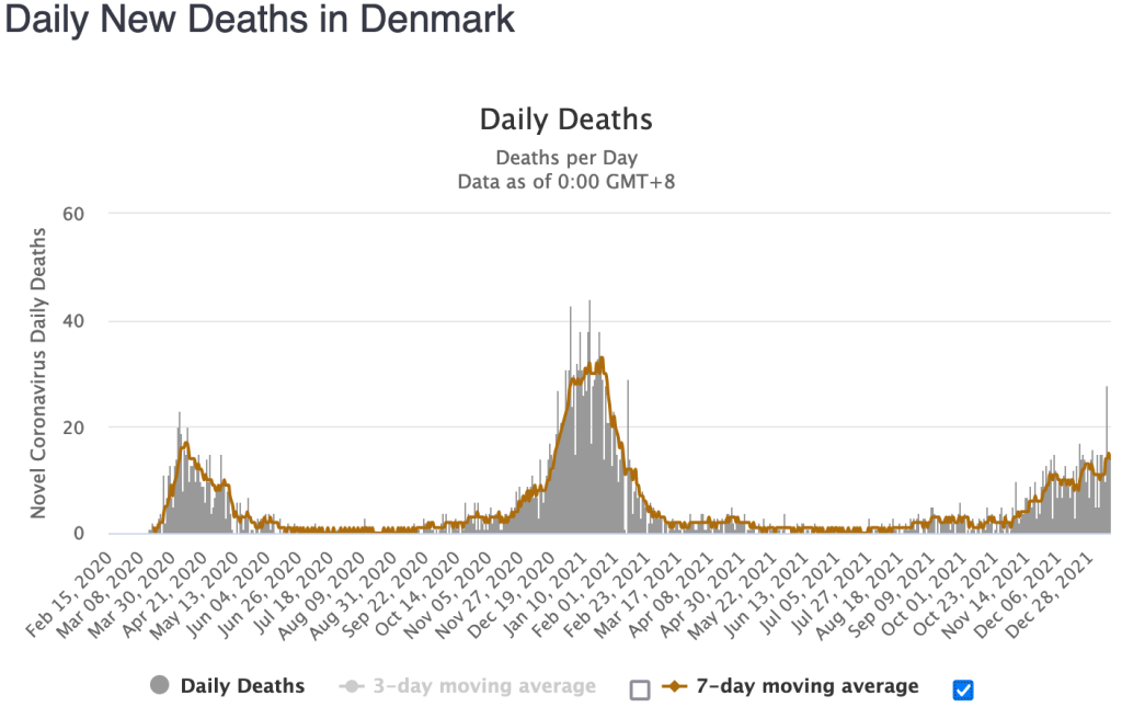 In Denmark, which has a lot of testing and virus surveillance, deaths are up but at a very moderate rate. At the peak of last year’s Winter surge, the COVID fatality rate was 0.94% (deaths/confirmed cases). For the Omicron wave in Denmark, the rate has been only 0.053%. This rate is very small, but it’s still not zero, so if you have COVID risk factors, continue to take precautions.