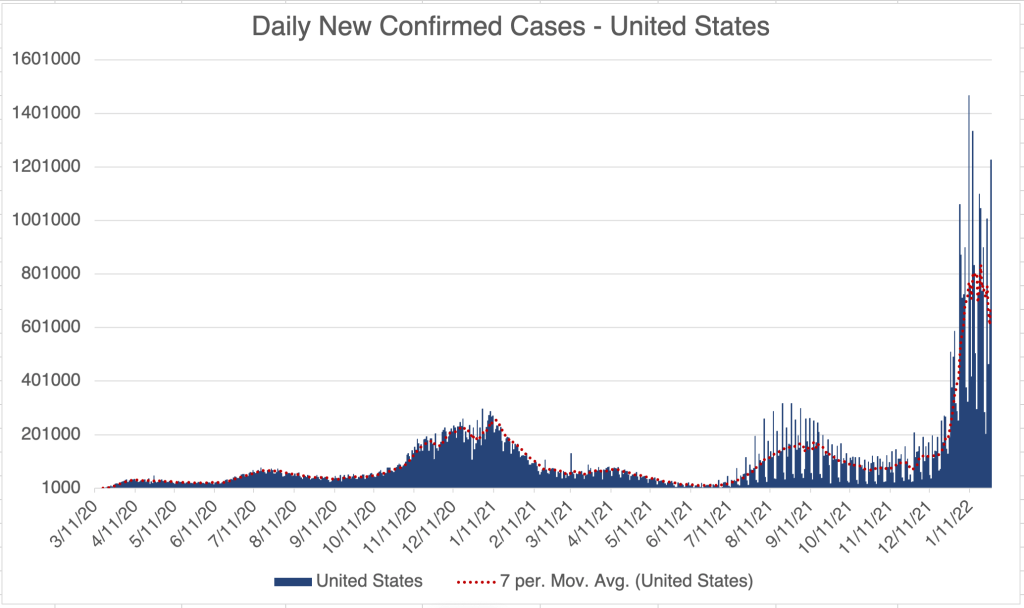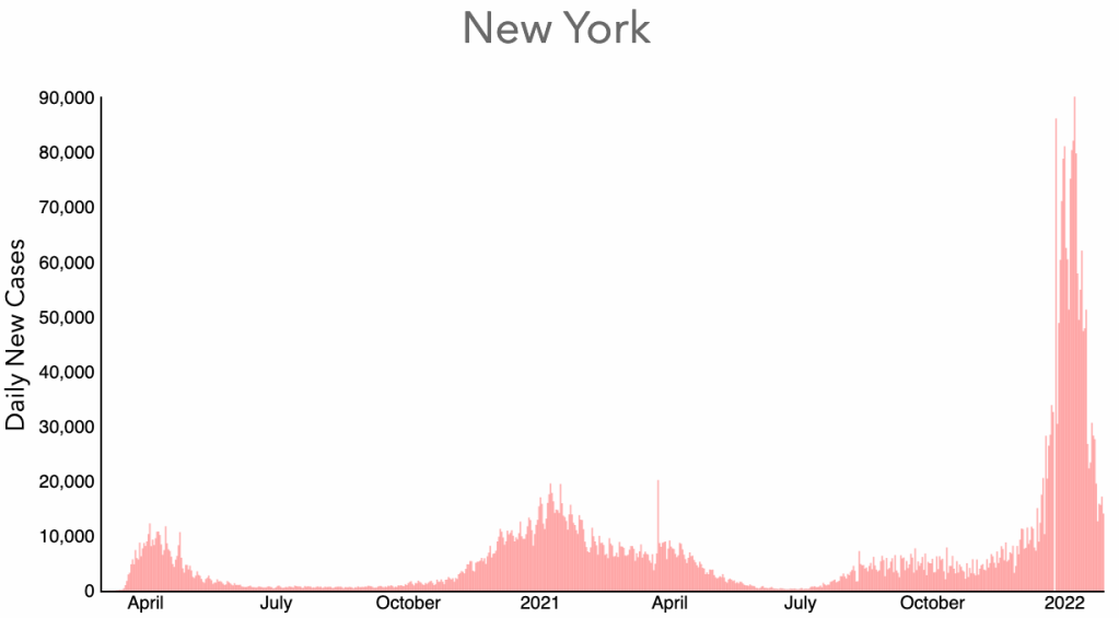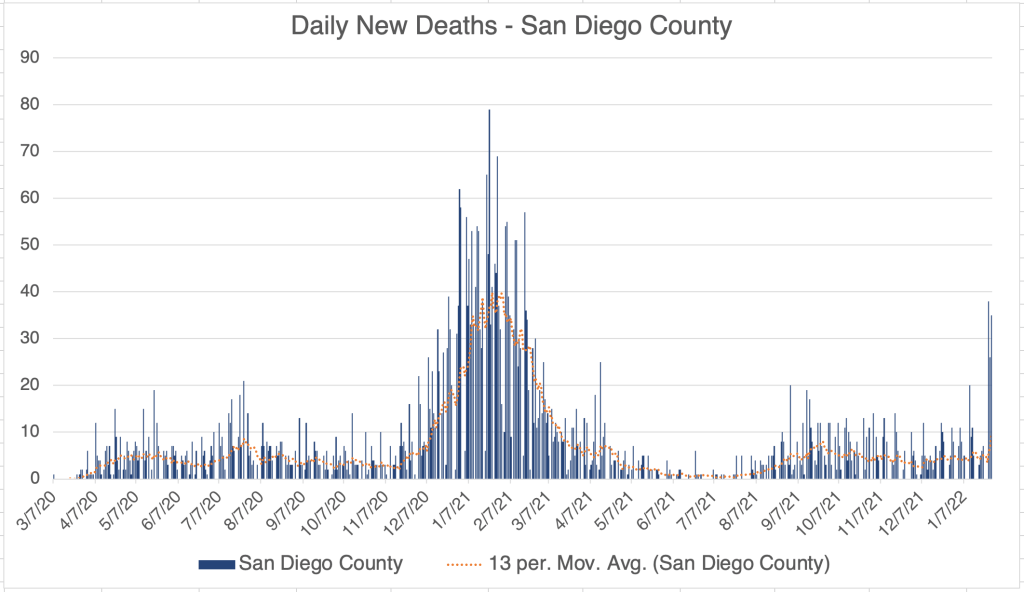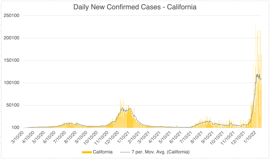 The US, California, and San Diego County are all well past the peak of Omicron cases, and cases are dropping rapidly. In some Northeastern states like New York, New Jersey, and Vermont, the Omicron wave is already nearly over.