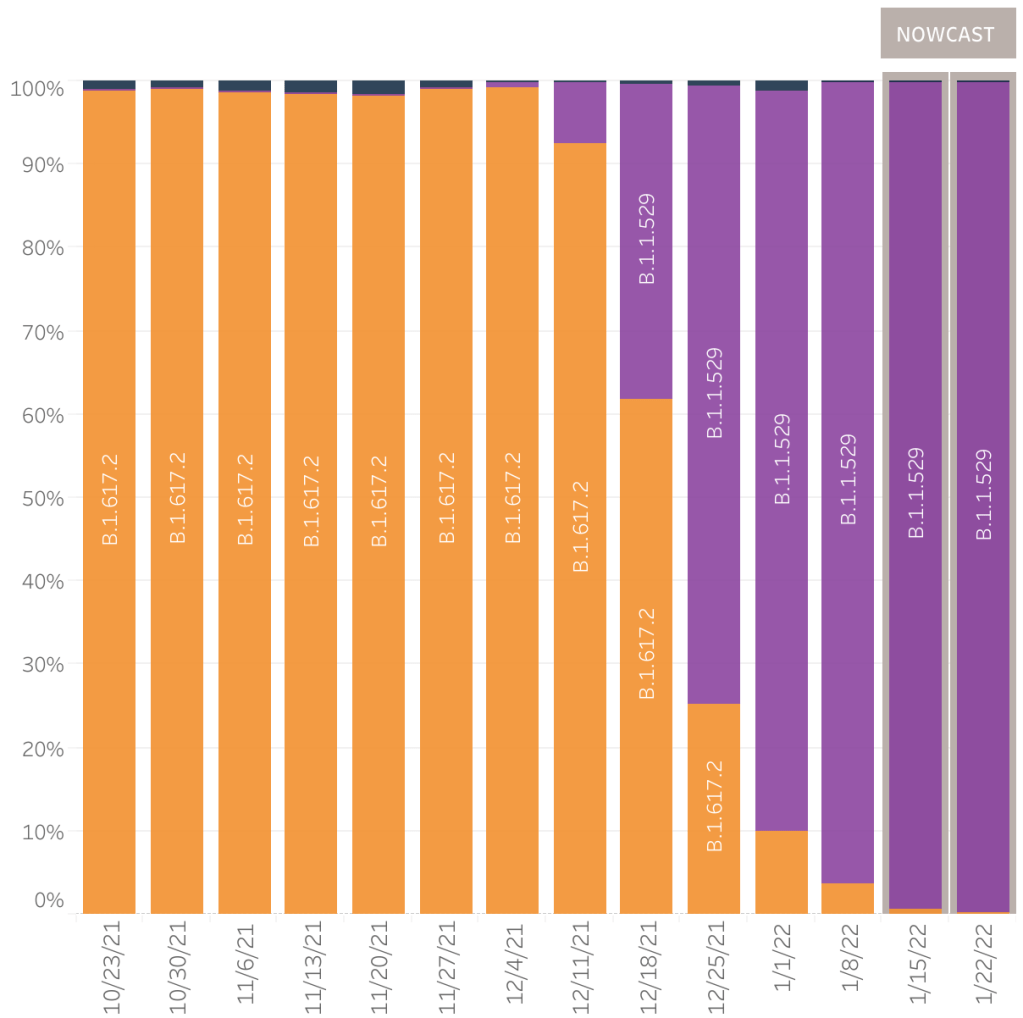 According to the CDCs variant proportion site, Omicron is now 99.9% of new cases. I will not report on this again, since this has now become uninteresting. There have been reports of a new subcategory of Omicron, BA.2, which is even more infectious than Omicron, but just as mild.