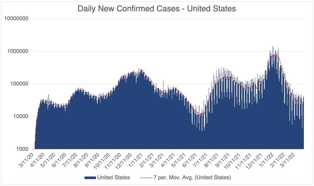XE variant: Just a few days ago, news emerged of a new COVID variant called XE in the UK. The variant is a hybrid of Omicron variants BA.1 and BA.2 and is more transmissible than BA.1. Since XE is very similar to other Omicron variants, I don’t expect it to cause a large wave of cases in the US.