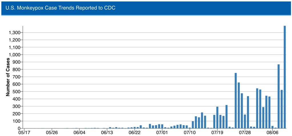 At the moment, 95.3% of cases in the UK are in a category called “men who have sex with men” (MSM), and this rate is likely similar in the US, but if cases continue to go up in the US, we will likely see more cases in the broader community. The good news is, new daily cases in the UK peaked in early July and are coming down now, so the US will likely start seeing a reduction in cases soon. Hopefully, the Monkeypox epidemic will be short lived.