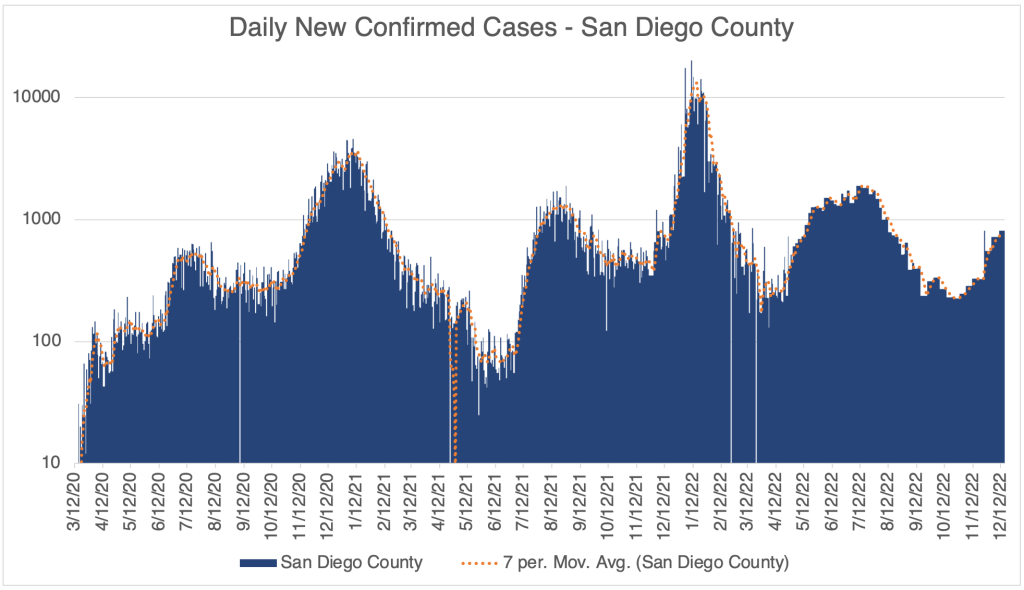Hospitalization data provides a better relative view of cases, since it shows how many are actually entering the medical system with moderate to severe cases, but San Diego County is no longer providing this information on their website.