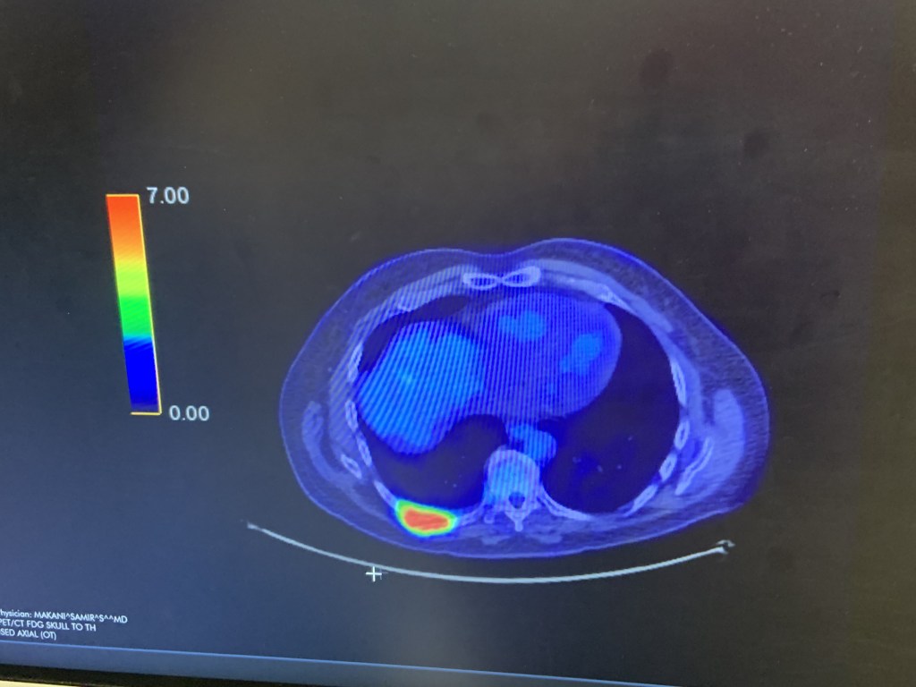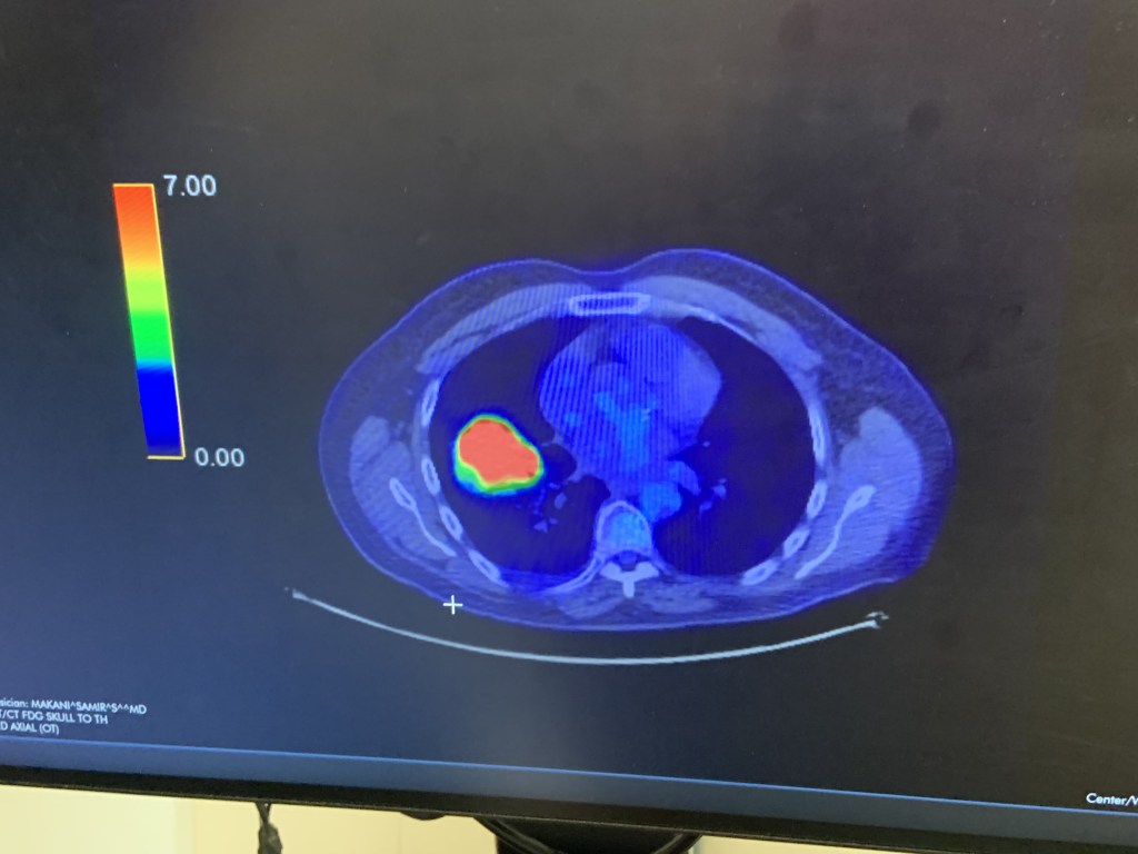 Then we met with the radiation doctor. Radiation will start as early as this week. I have a targeting appointment tomorrow, and the tumors will be precisely mapped out, and I’ll get little tattoos so they can orient my body in the machine. So for all of you who have wanted me to cave to the trend and get a tattoo, this is your chance! They’ll start with the tumor on my rib first, as this is where most of my pain is coming from. So after next week, I should be able to improve rapidly in that regard. I may also get some radiation for my primary tumor in my lung later on.