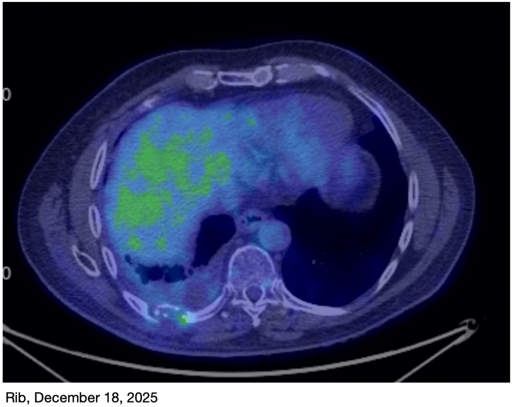 Until about a month ago, my pain was gradually increasing as my new tumors grew. Happily, my new treatment regimen is apparently working! For the last month or so, my pain level has been decreasing, allowing me to tune down my pain meds. Additionally, a PET scan just yesterday revealed that the new tumors, which weren’t responding to the old treatment regimen, are responding well to the new one.