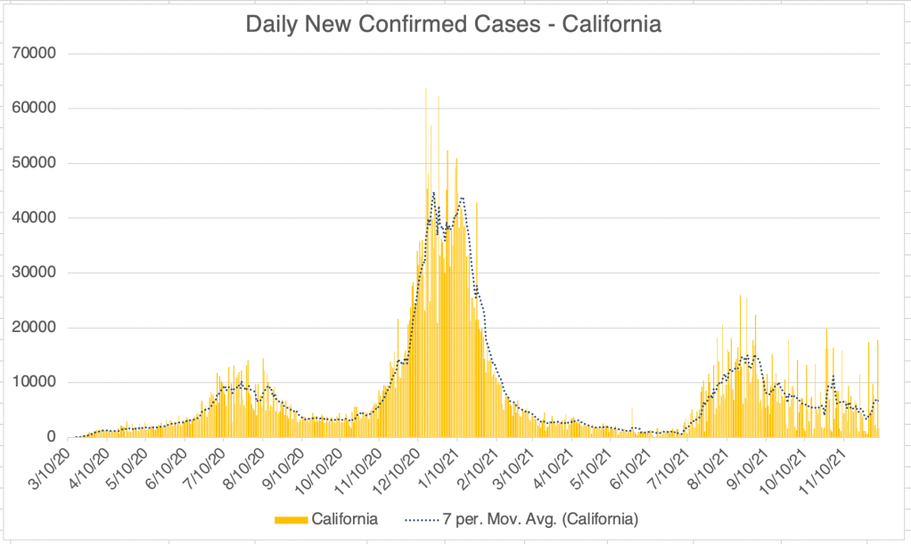 California and San Diego County are of course also experiencing extremely high numbers of cases right now. LA County again has the highest number of cases in the US, with a staggering 384,000 active cases right now.