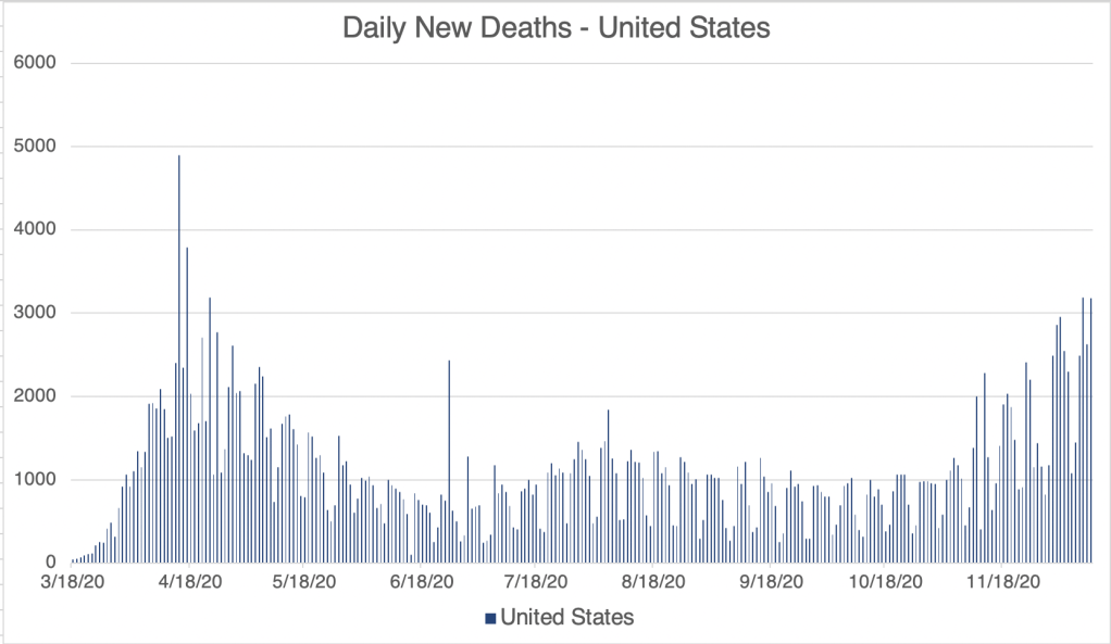 Impact on ADE? If you’ve read my posts on ADE, then you know that the danger from ADE may come when a different strain arises. With the South Africa strain arriving in the US, we may be able to see if ADE will have an impact with SARS-2 in the next few weeks and months. So far, new death numbers have come down with Wave 3, and there is no apparent impact from ADE on case severity. I will certainly be watching to see if this changes.