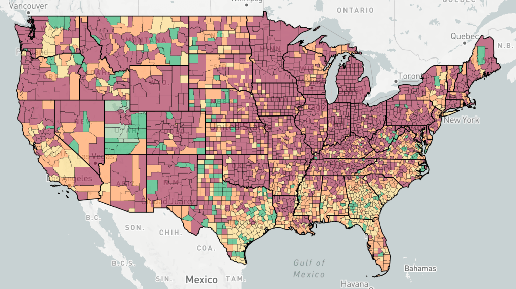 Below is an “animation” of sorts, photos from endcoronavirus, about a week apart, with one photo from June, and then a series starting in September. I’ve said that the Fall wave started in the North and then moved to the South as the wave progressed. I think you can see this in this series of photos. You can also see a flare up in new cases in January, right after Christmas.
