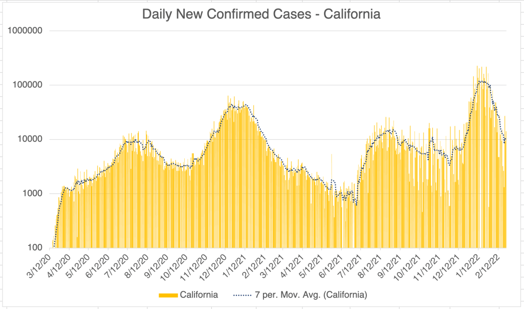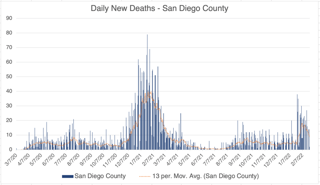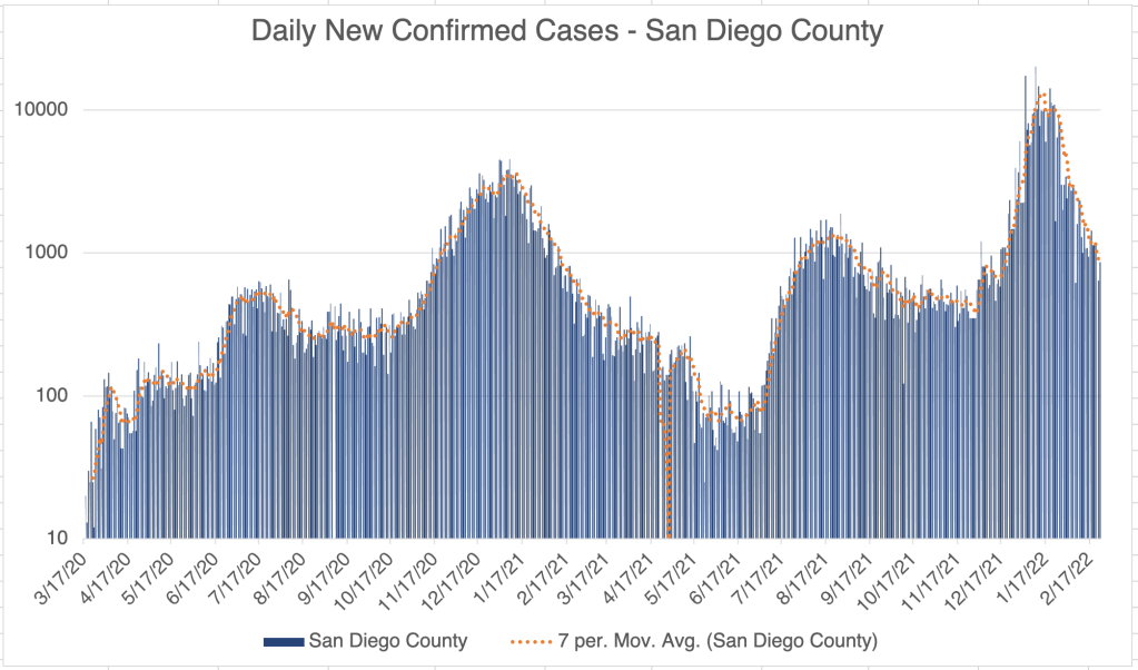 Hospitalization data provides a better relative view of cases, since it shows how many are actually entering the medical system with moderate to severe cases, but San Diego County is no longer providing this information on their website.